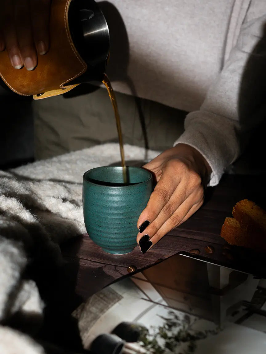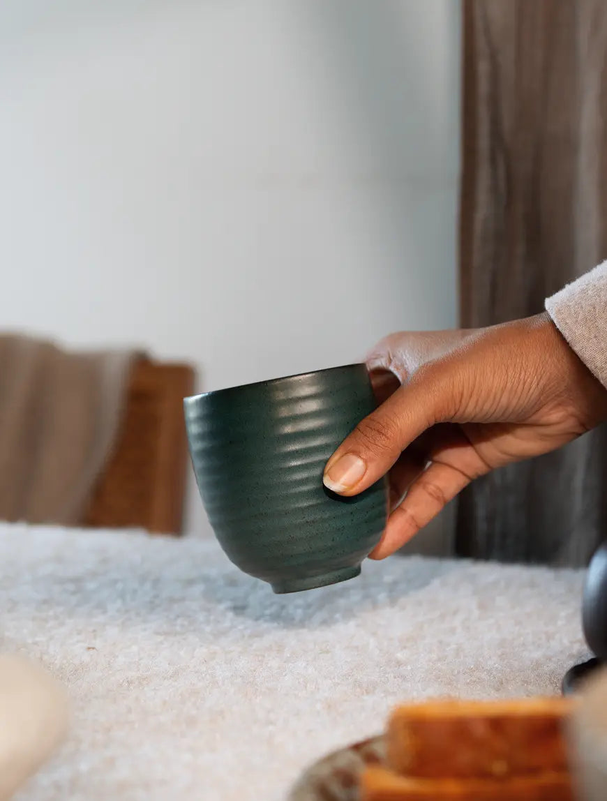 Asagi Ceramic Tea Cup brings calm to every sip. Its dark teal tone and balanced 200 ml form feel grounding and warm. Food-safe, durable, and made for slow, mindful tea moments.