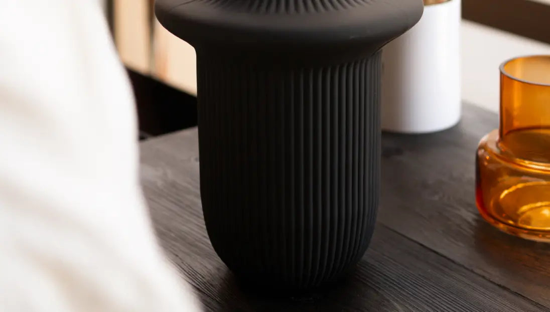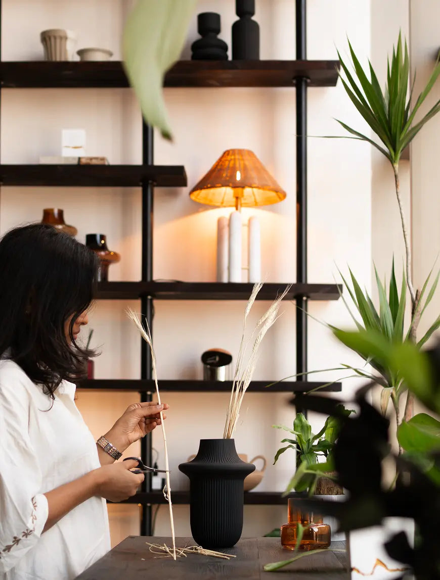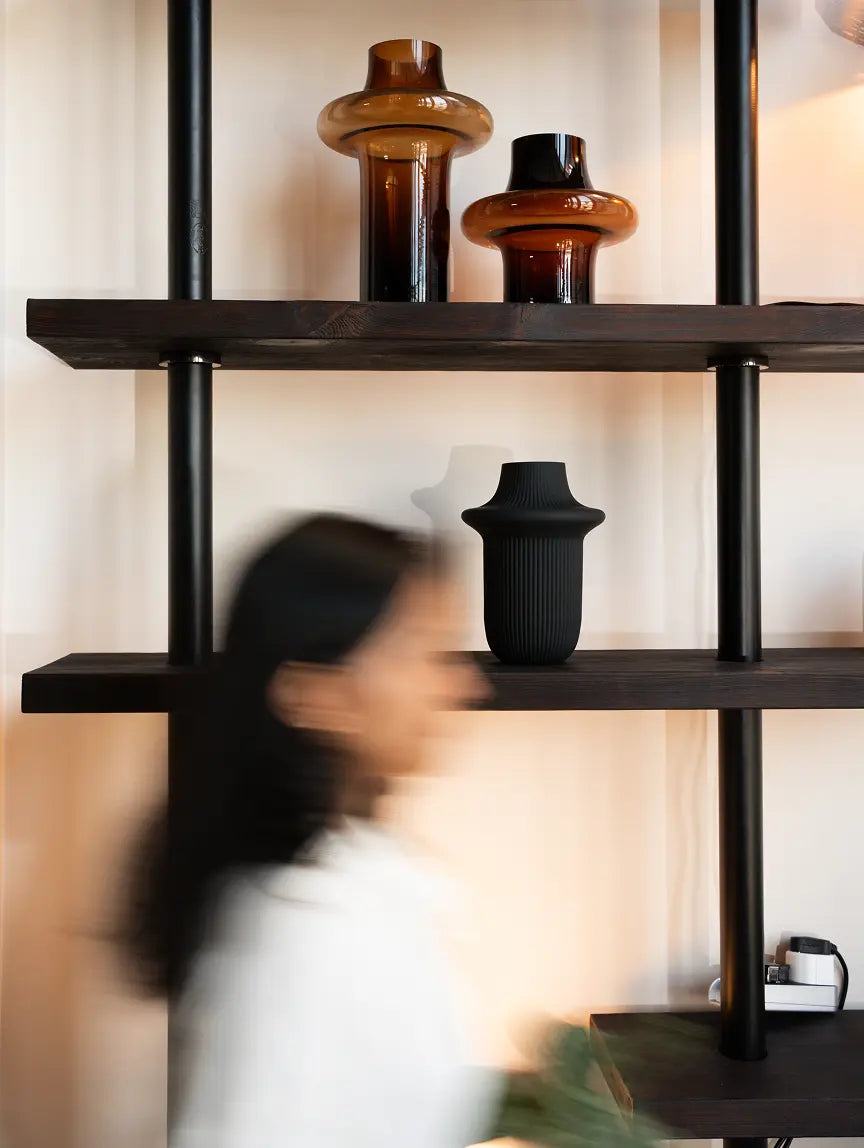 The Halo Black Glass Vase brings sculptural calm to your space. Crafted from premium glass with a matte black finish, this modern vase anchors stems or stands alone as statement decor on shelves or tables.