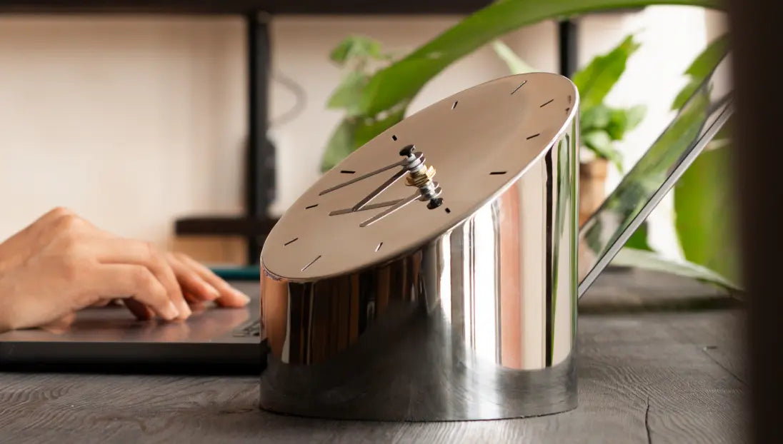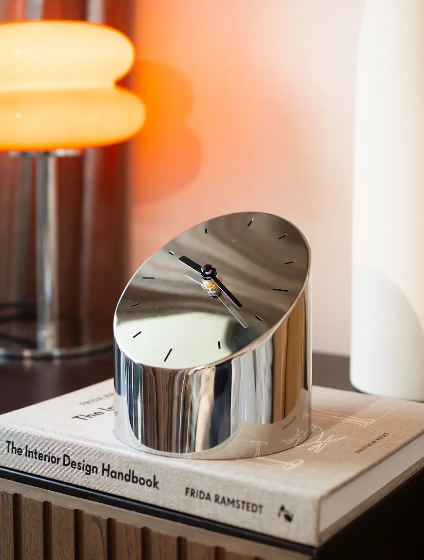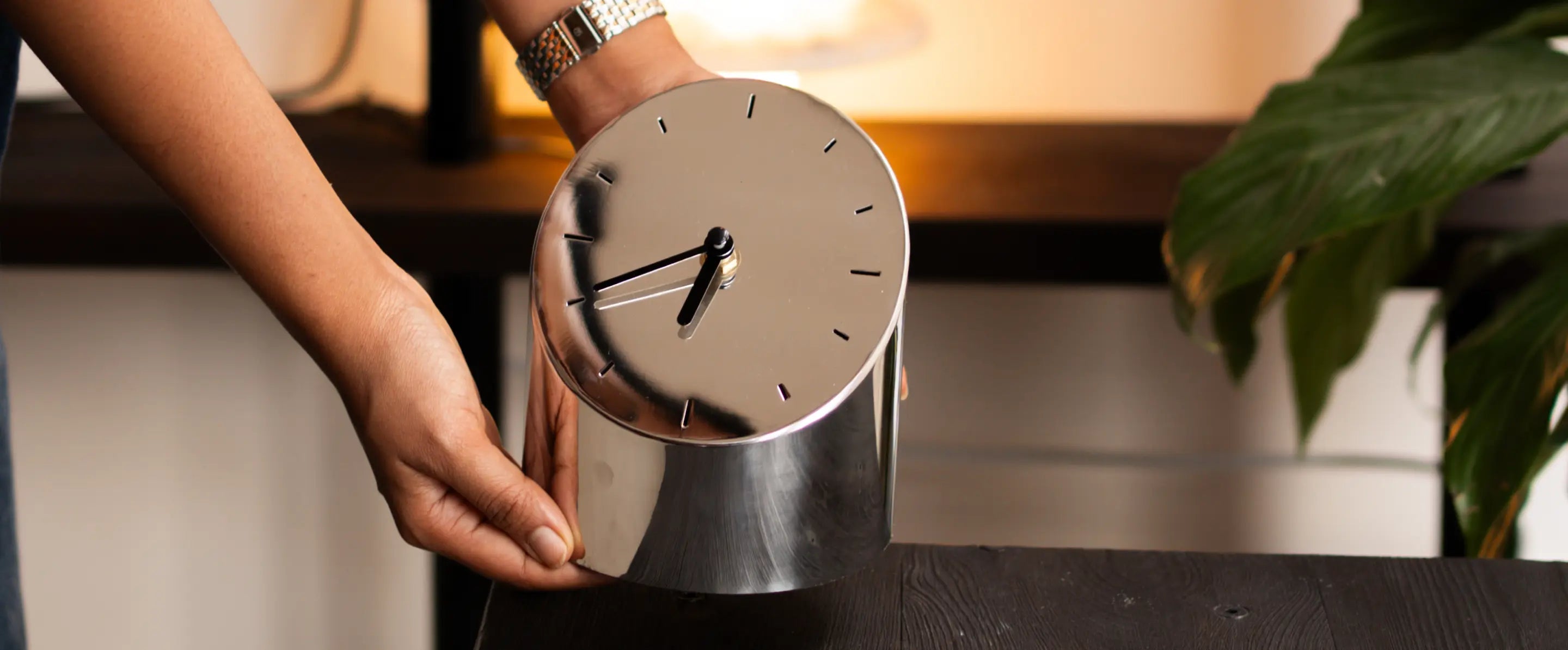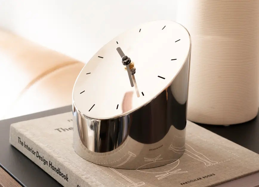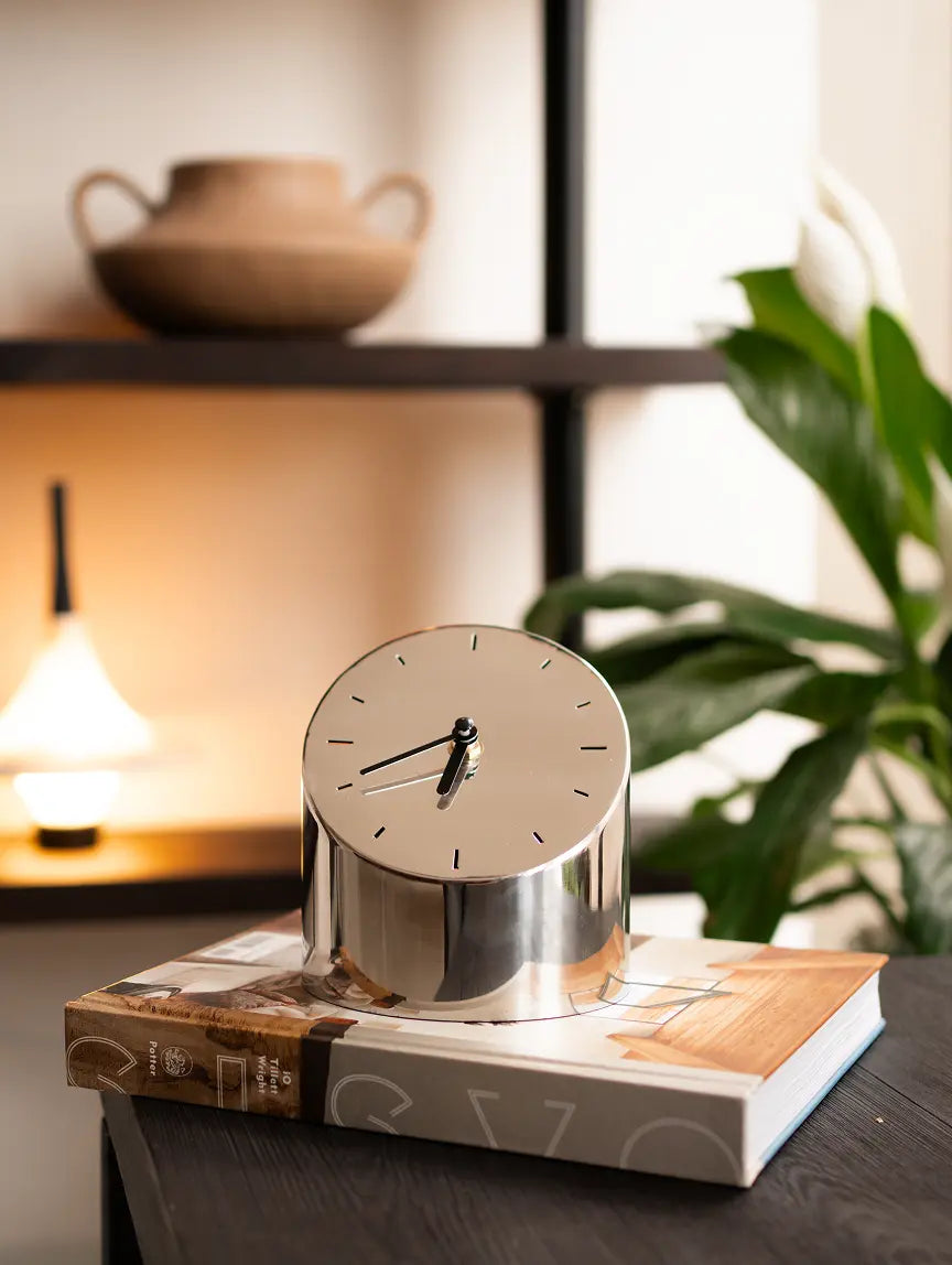 Horizon Rise Metal Table Clock combines sculptural elegance with practical design. Crafted in silver-finished metal, it’s sleek, lightweight, and built to last. A modern statement piece for your desk, shelf, or bedside.